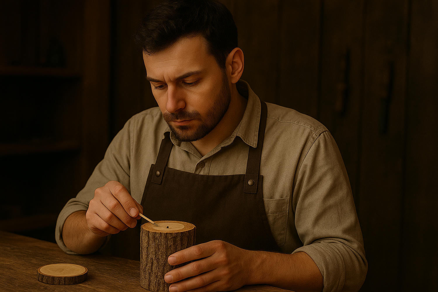 Chaque bougie est unique, coulée à la main dans du bois naturel.
